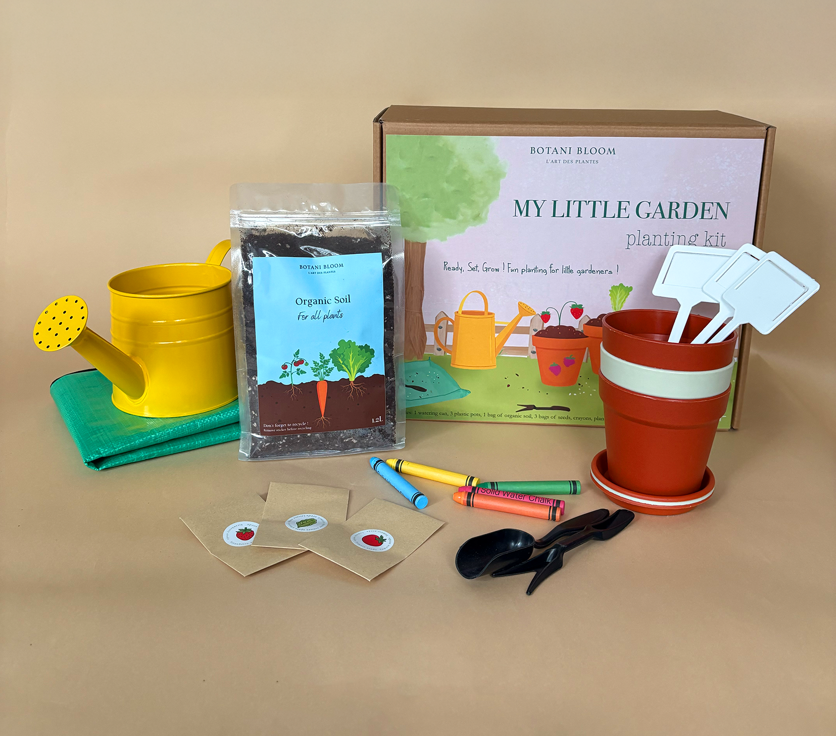 Introducing the My Little Garden Kit - the ultimate gardening set designed for aspiring young gardeners! This comprehensive kit includes all the essential tools for both indoor and outdoor planting, ensuring a fun and engaging gardening experience.